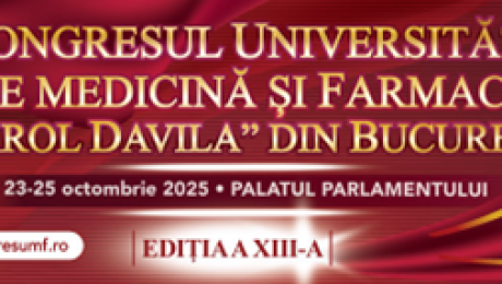 A XIII-a ediție a Congresului Universității de Medicină și Farmacie “Carol Davila” din București începe joi, 23 octombrie, la ora 9.00, la Palatul Parlamentului. Sesiunile științifice se vor desfășura în