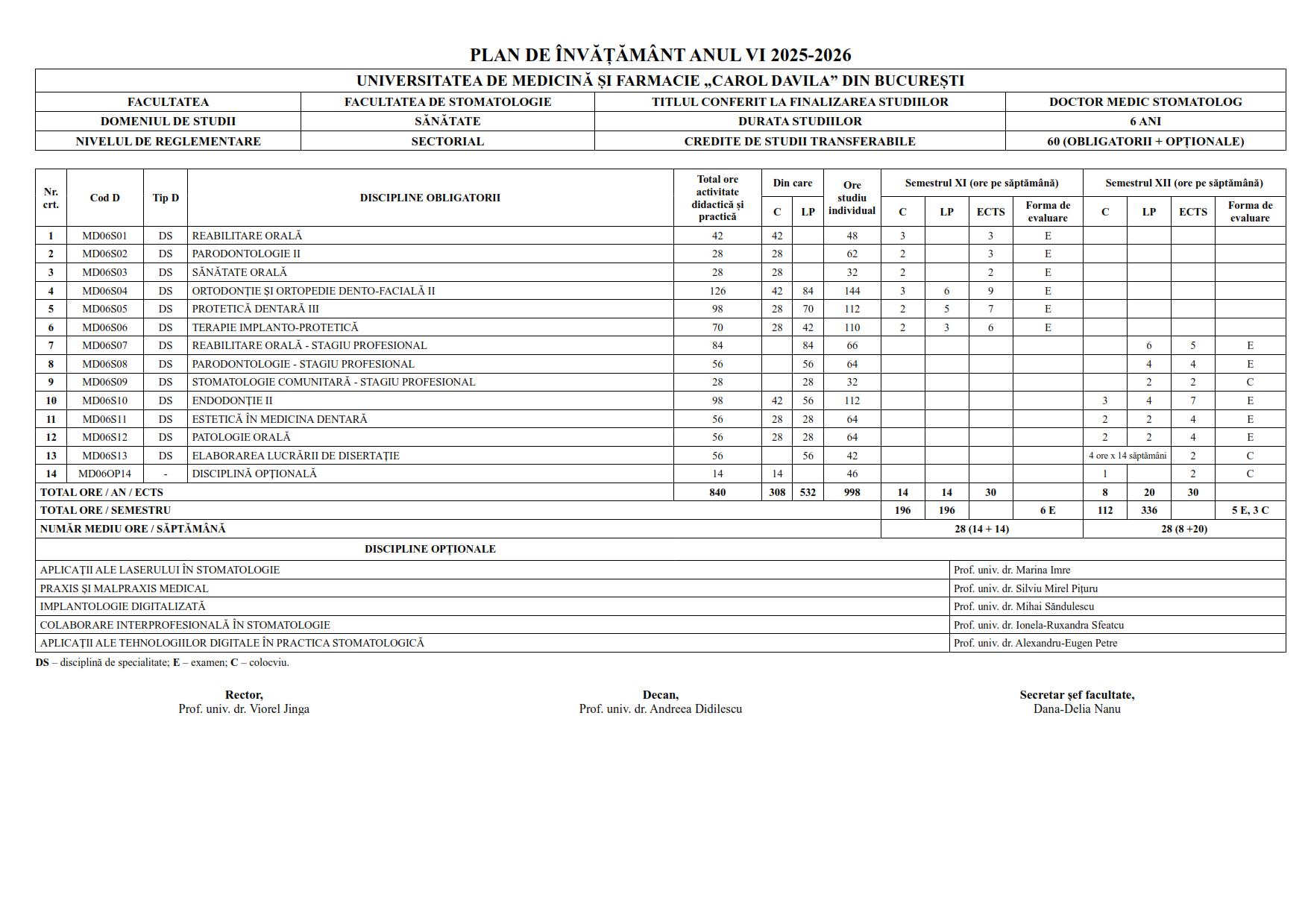 | DISCIPLINE OPȚIONALE | |||